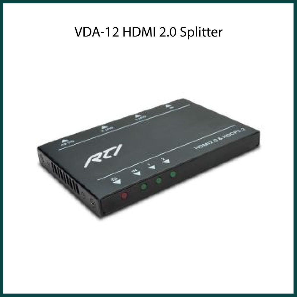 The VDA-12 is an HDMI splitter that delivers 4K video signal from one source to two displays simultaneously. Compliant with HDMI2.0 and HDCP2.2, the VDA-12 supports resolutions up to 4K and supports 3D at 1080.